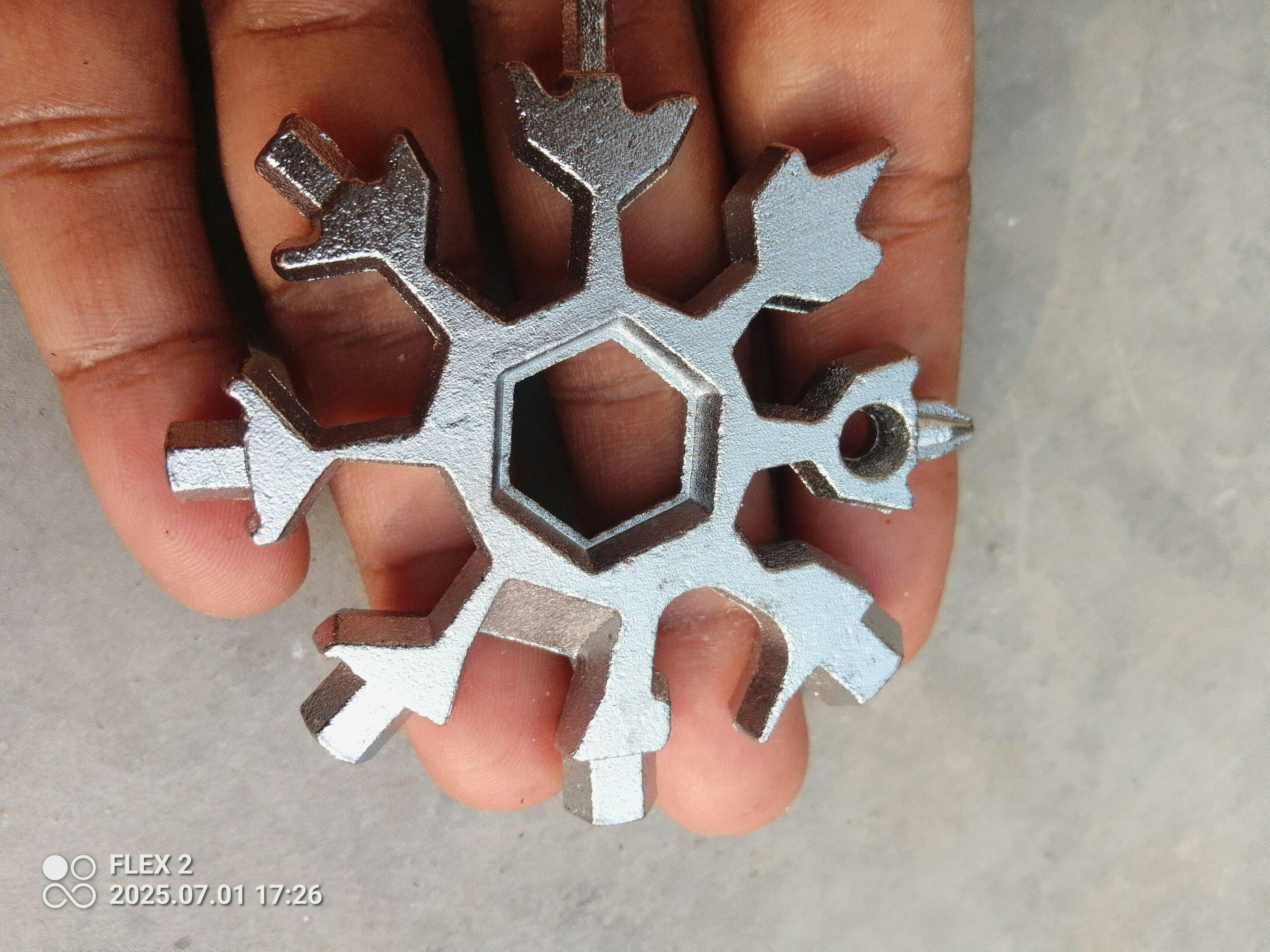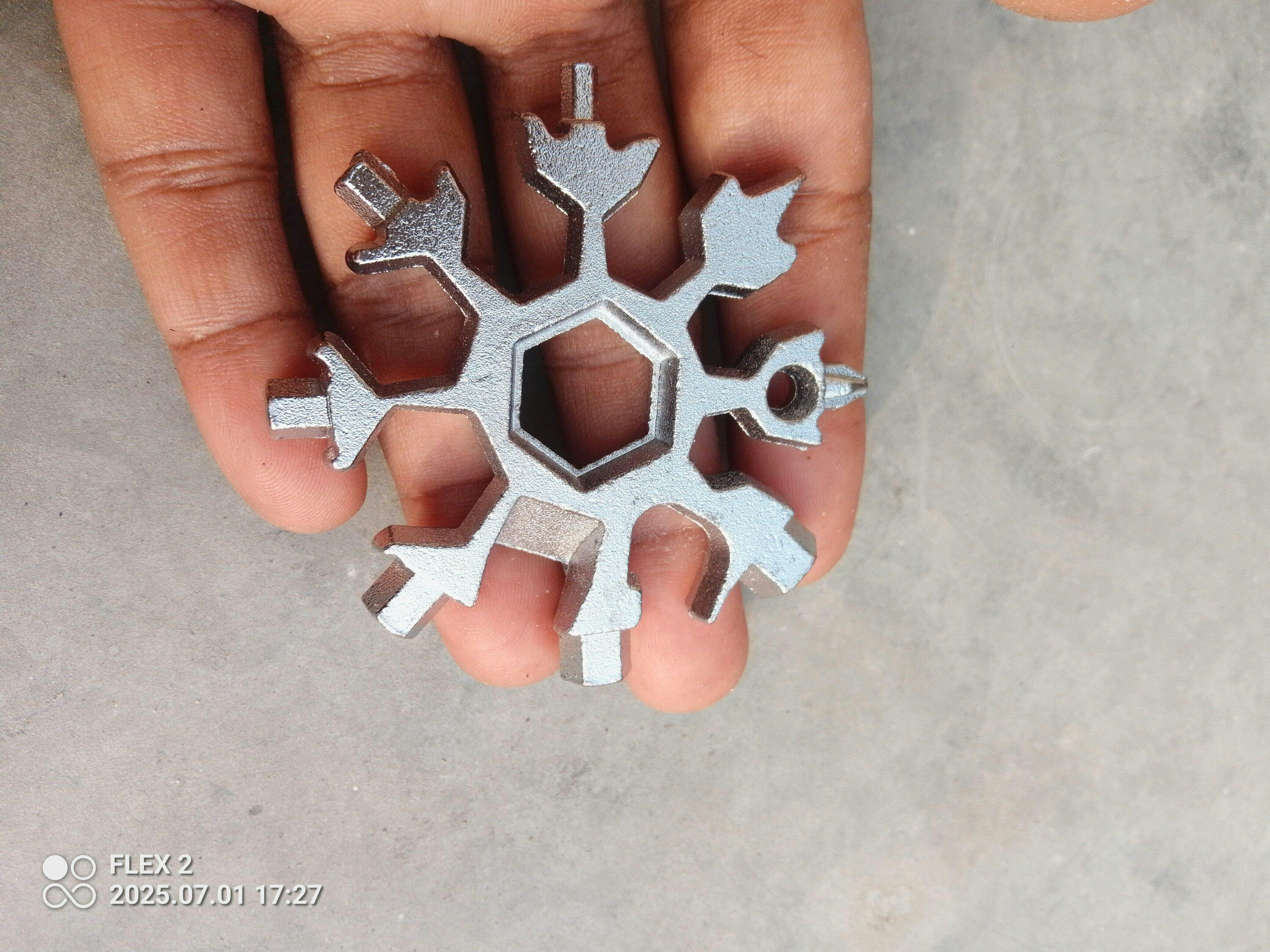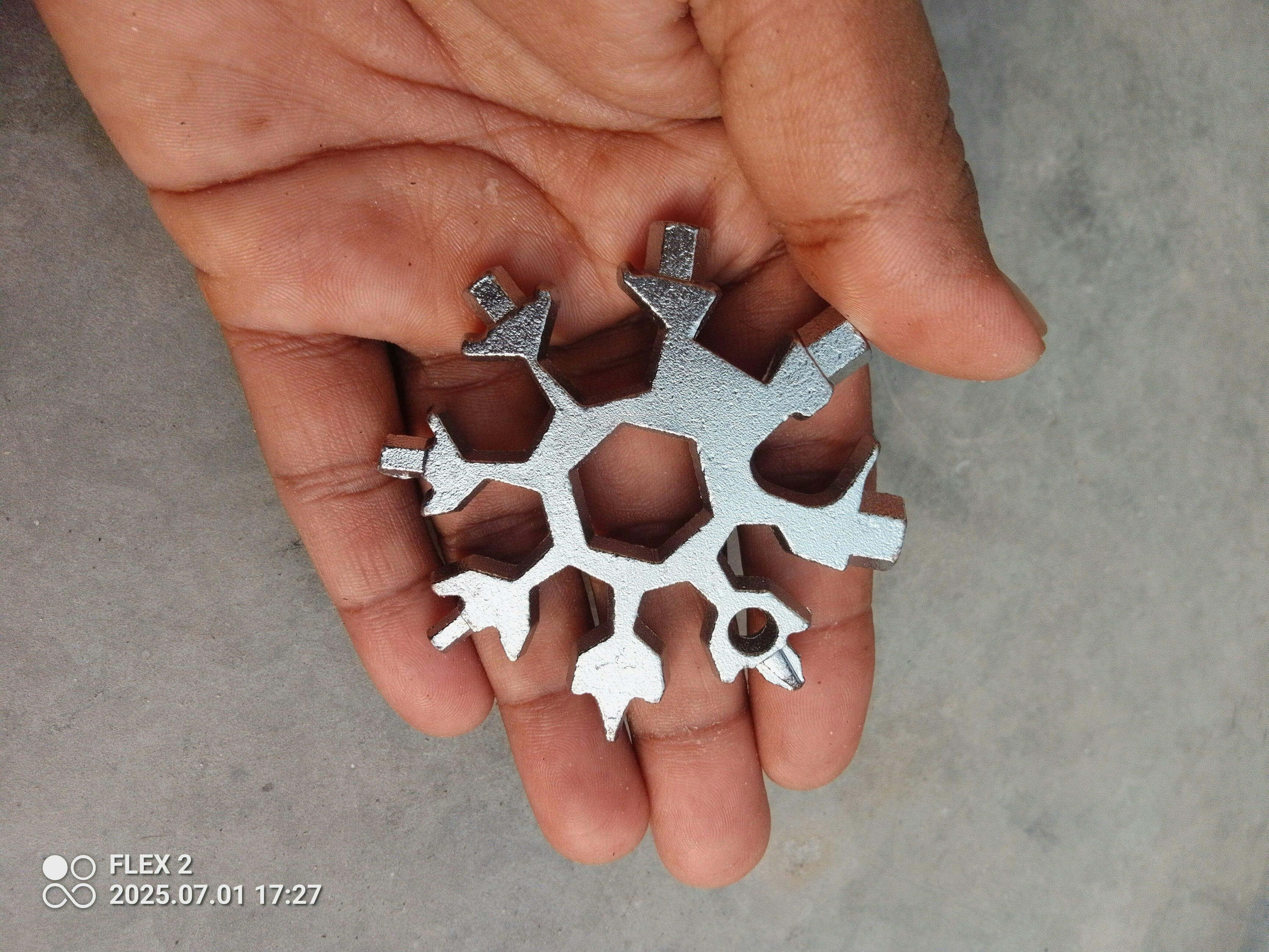 Introducing the Blizzard Key Tool, the ultimate 18-in-1 Steel Multi-Tool that fits right in your pocket. Compact yet powerful, this snowflake-shaped tool is perfect for camping, cycling, hiking, home repairs, and everyday tasks. Built with premium steel, it’s strong, and long-lasting.