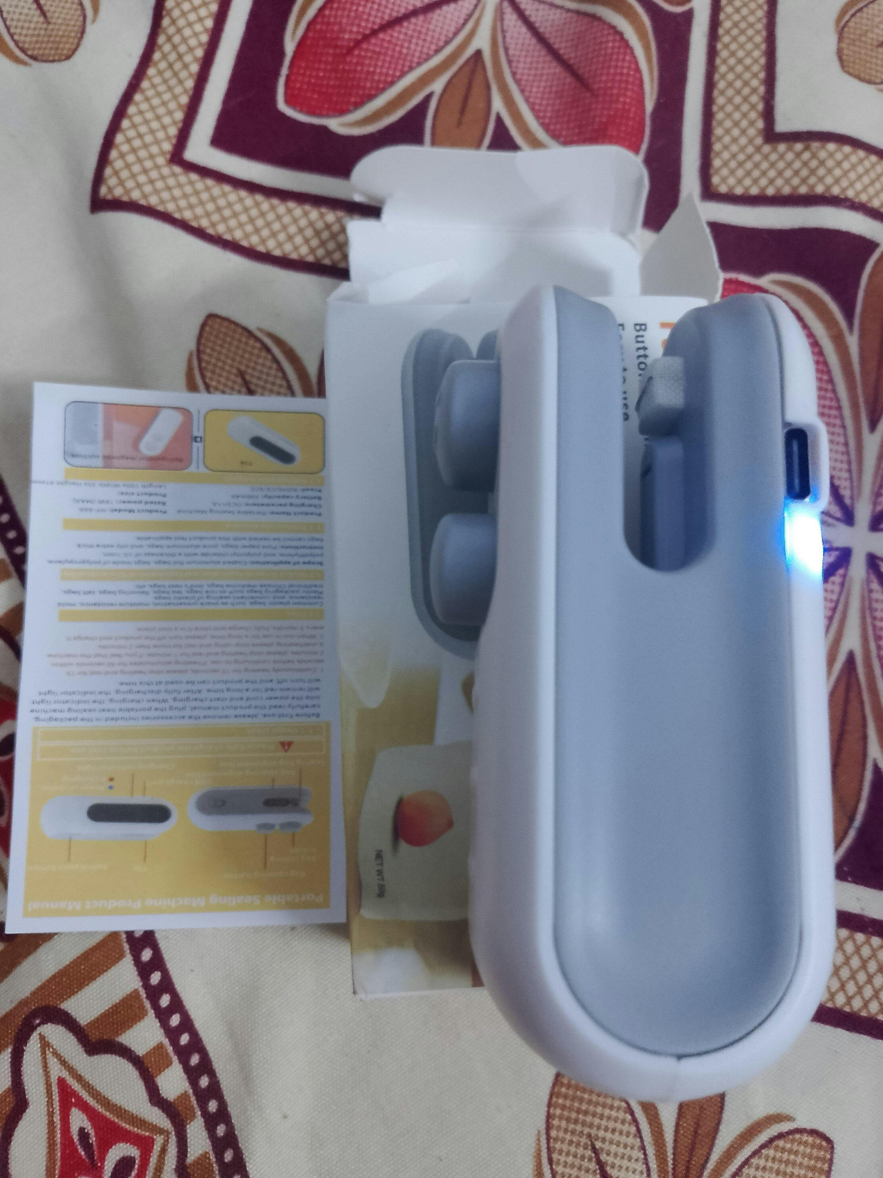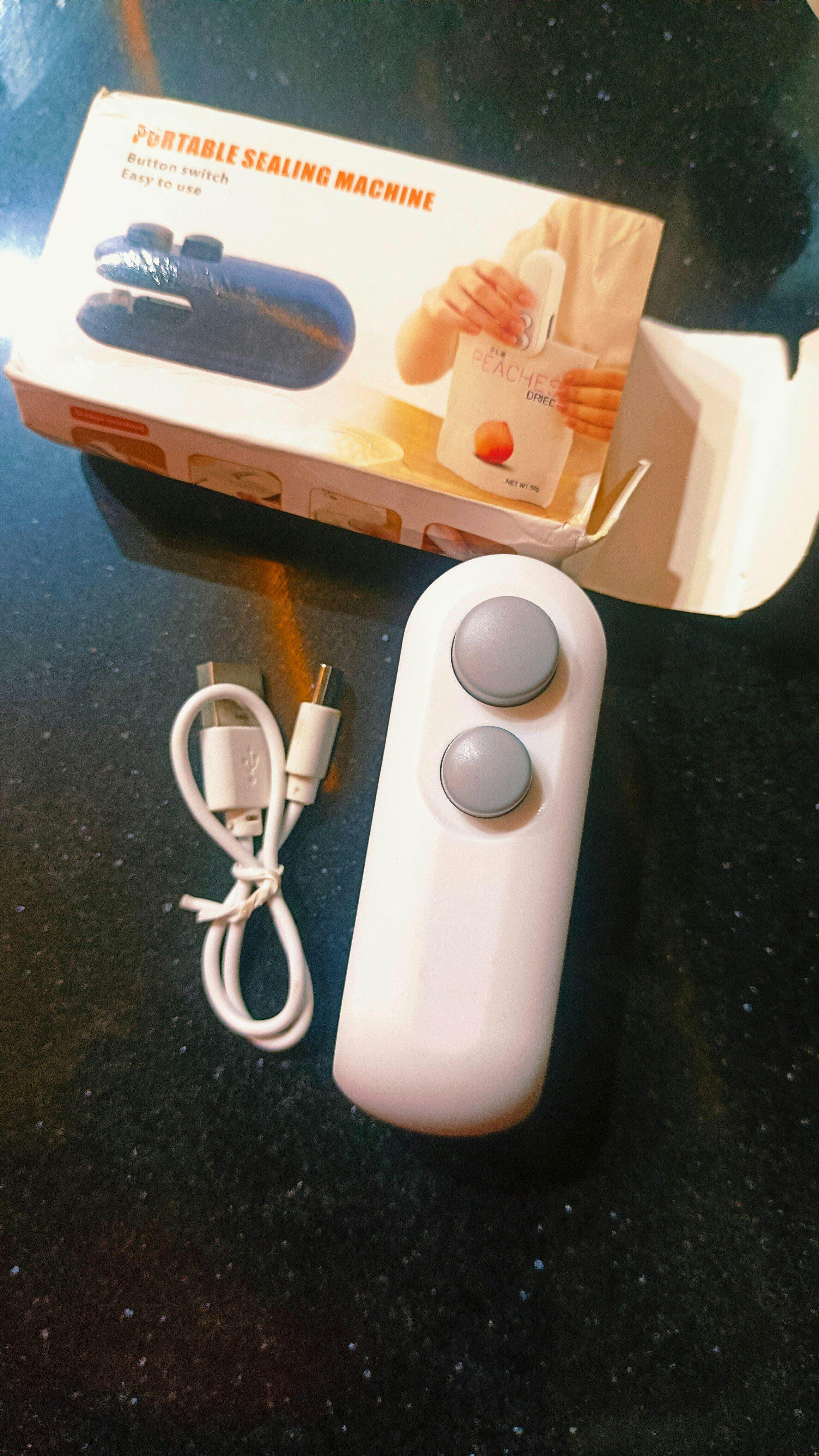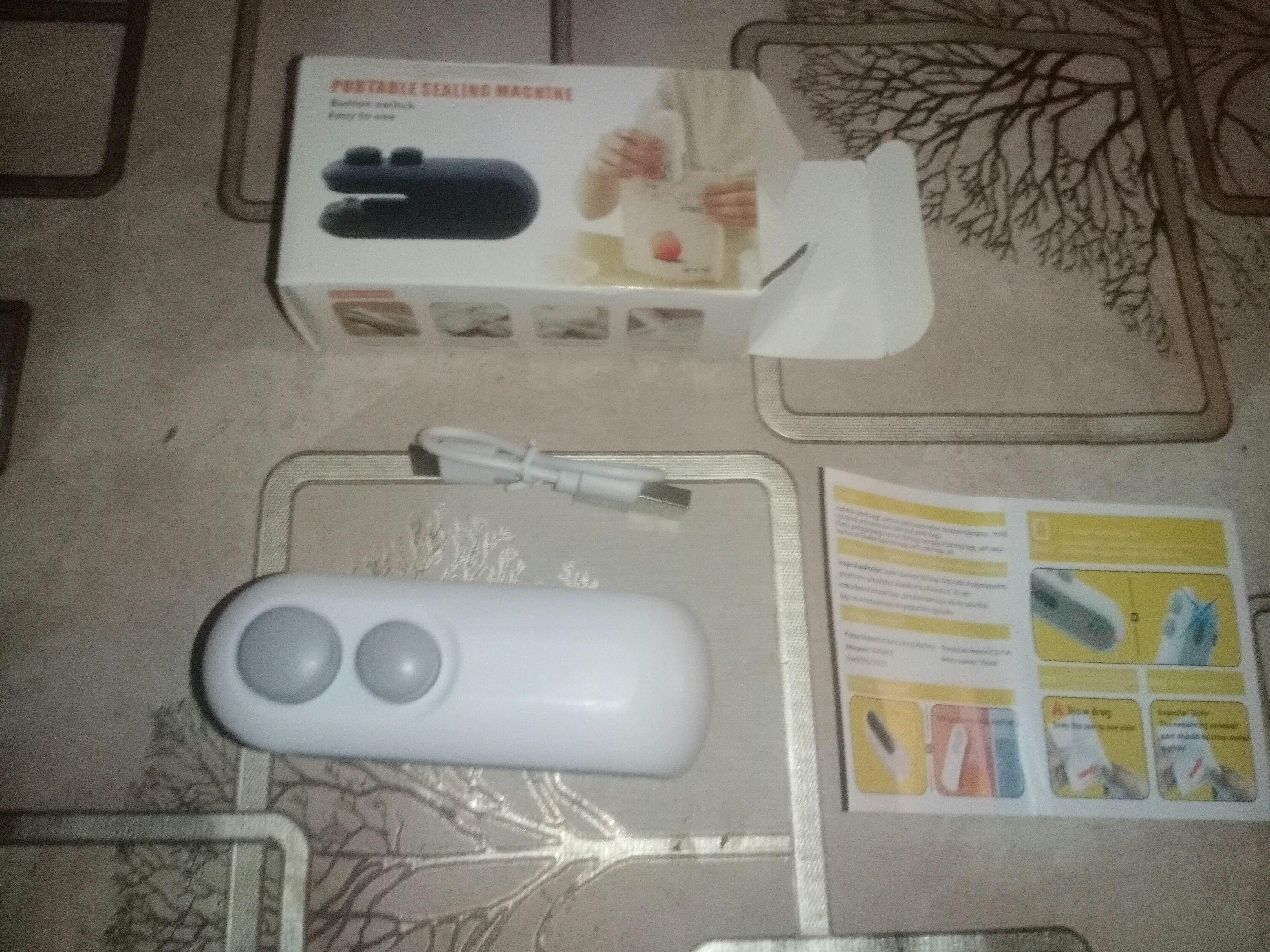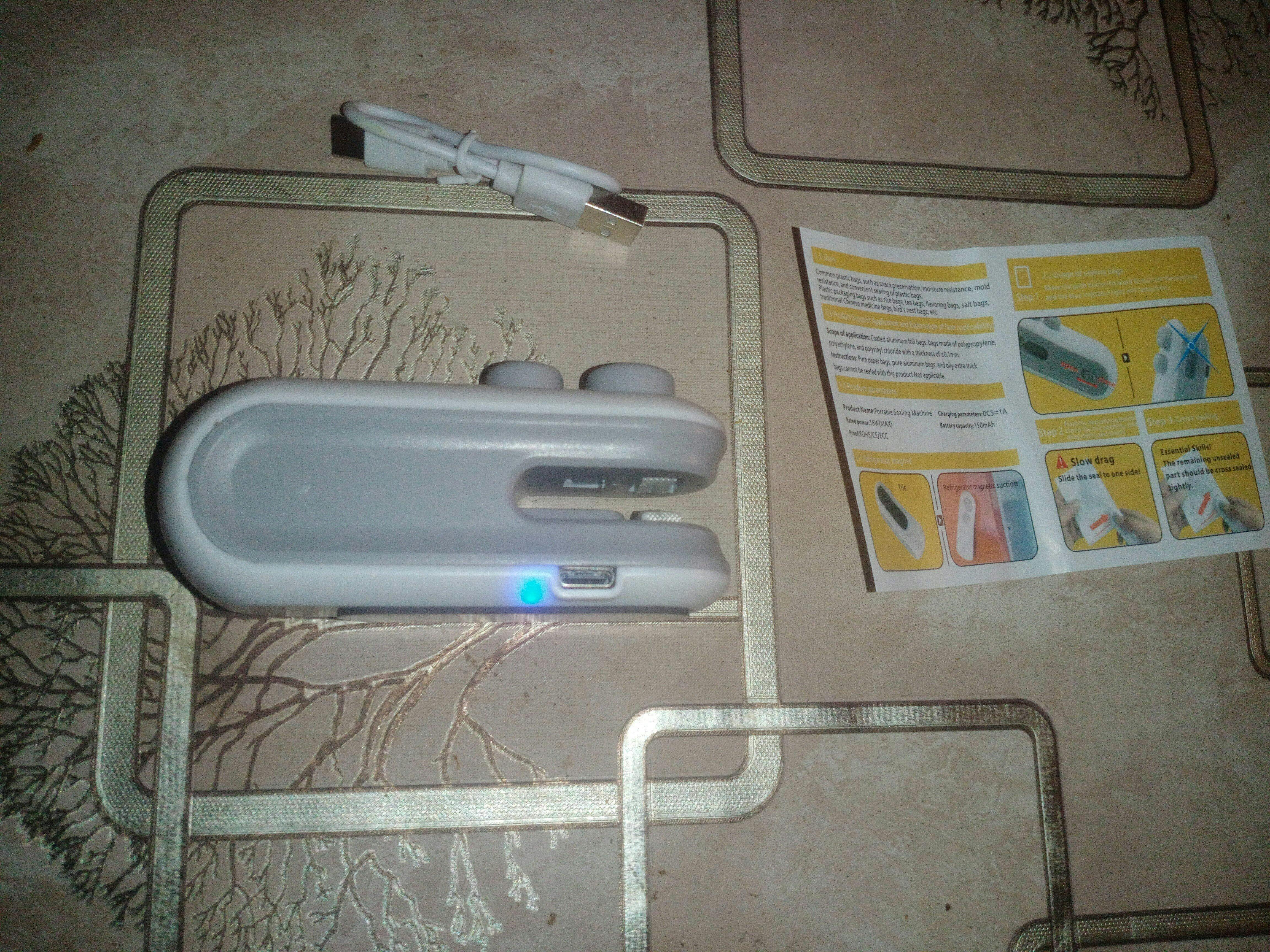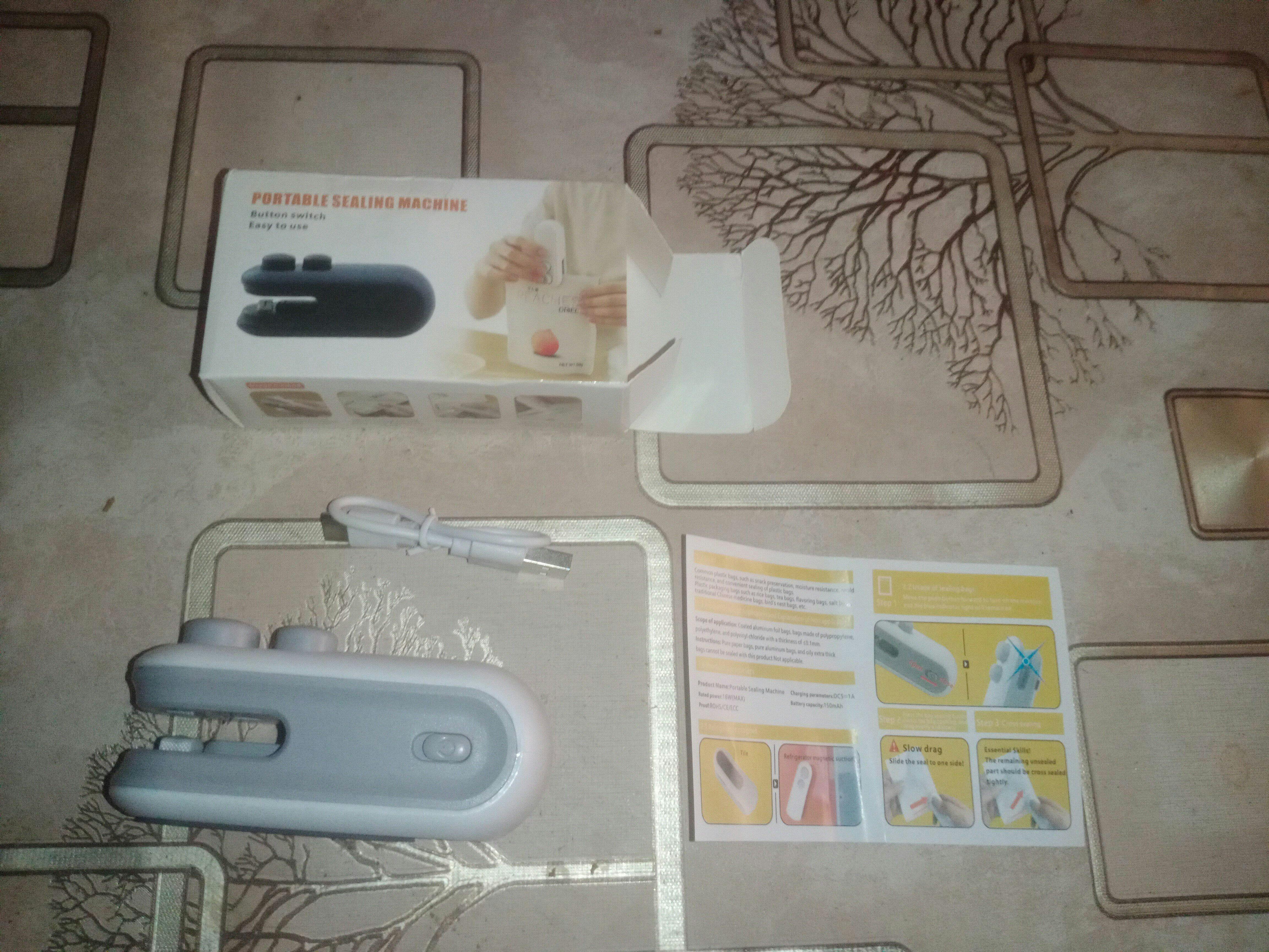 Mini Heat Sealer, USB cable, quick-start card.